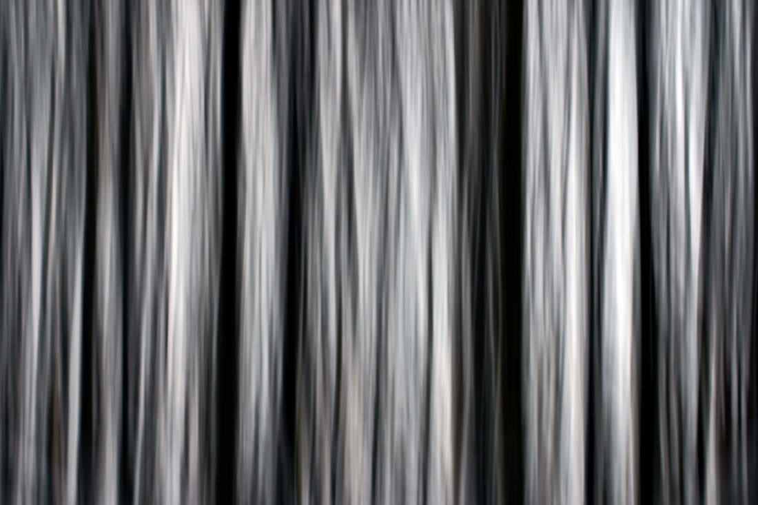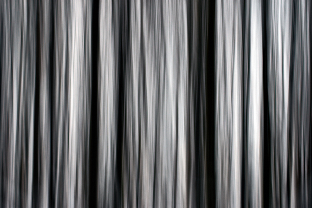 Description: 30.1. 2026, Těšínsko Byl použit záměrný pohyb fotoaparátu (ICM), aby vynikly vertikální křivky a barvy stromů.