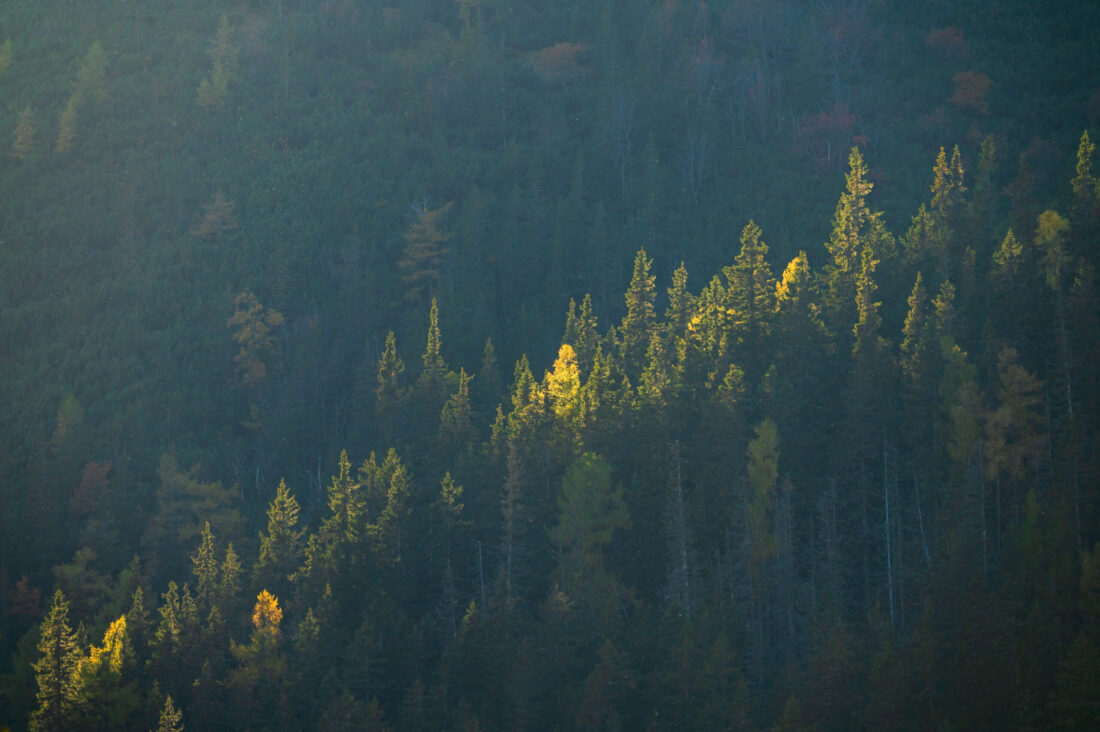 Description: Posledné lúče dňa prenikajúce pomedzi stromy a zahaľujúce krajinu Západných Tatier do sýtych odtieňov. Záber bol odfotený z terasy Žiarskej chaty počas večernej zlatej hodinky jedného októbrového popoludnia roku 2024.