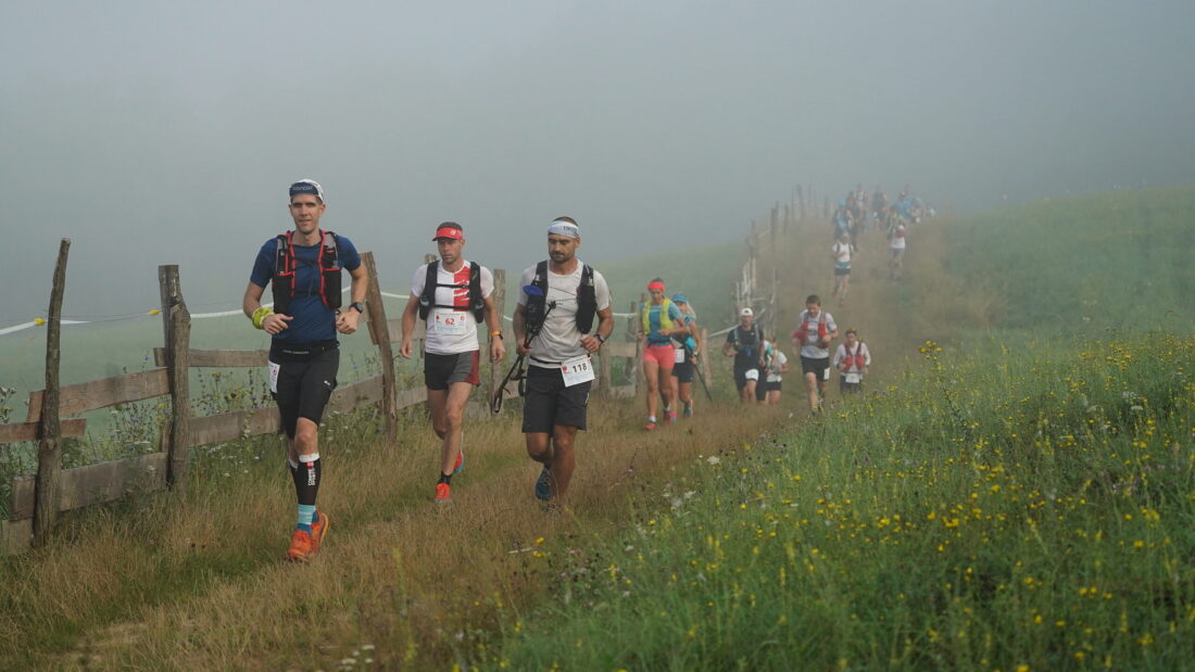 Popis: Na severovýchode Slovenska, žije národnostná menšina Rusínov a v nej skupina nadšenco,v ktorá dáva o sebe vedieť. Každý rok organizujú Rusínsku 100, ultrabeh Nízkymi Beskydami. Fotografia zobrazuje bežcov, skoro ráno, krátko po štarte pri stúpaní z mesta.